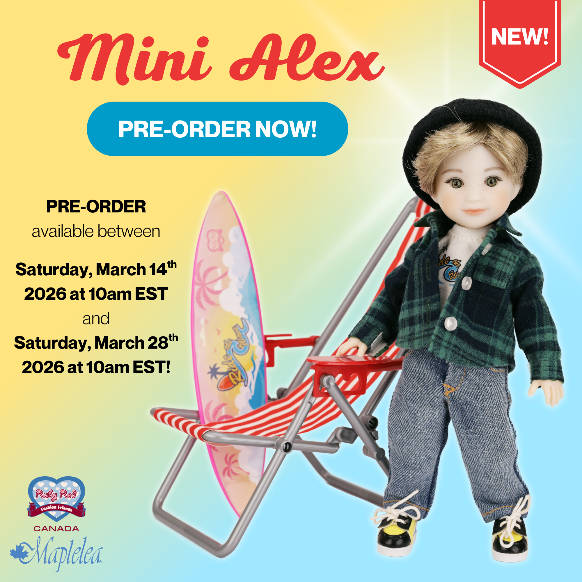 Introducing Mini Alex, the spirited 8-inch mini doll inspired by our beloved Ruby Red Fashion Friends core line doll, Alex! A passionate surfer and budding entrepreneur, mini Alex is ready to catch waves and inspire adventures!