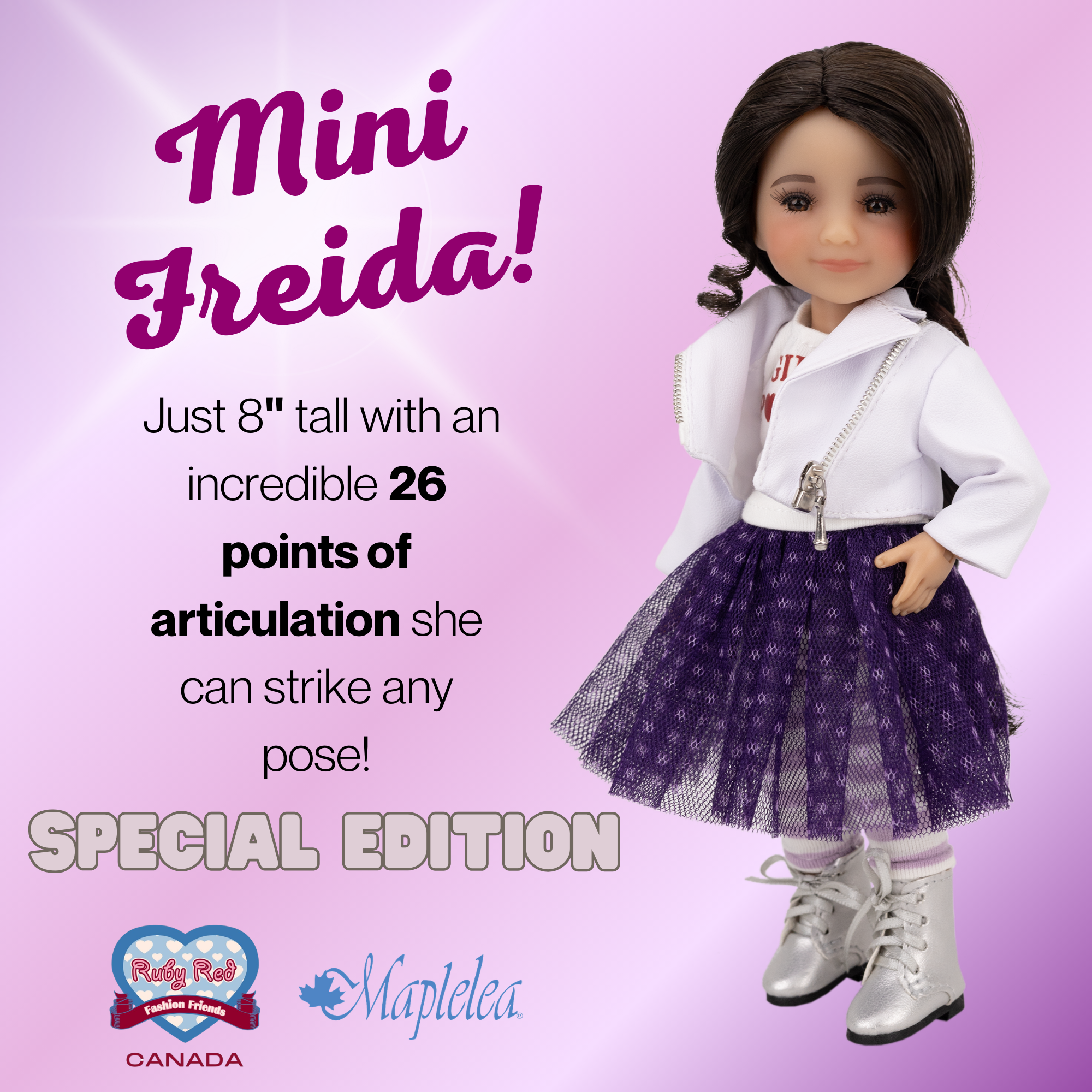 With 26 points of articulation, mini Freida can strike all sorts of fabulous poses, making every play session a burst of creativity and fun! Get ready to unleash your imagination with this stylish companion by your side!