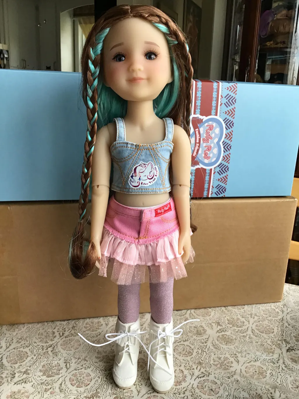 Ella’s style is energetic, colorful, and expressive. Her fashion-forward denim corset and super unique hair reflect her wild imagination and quirky personality.